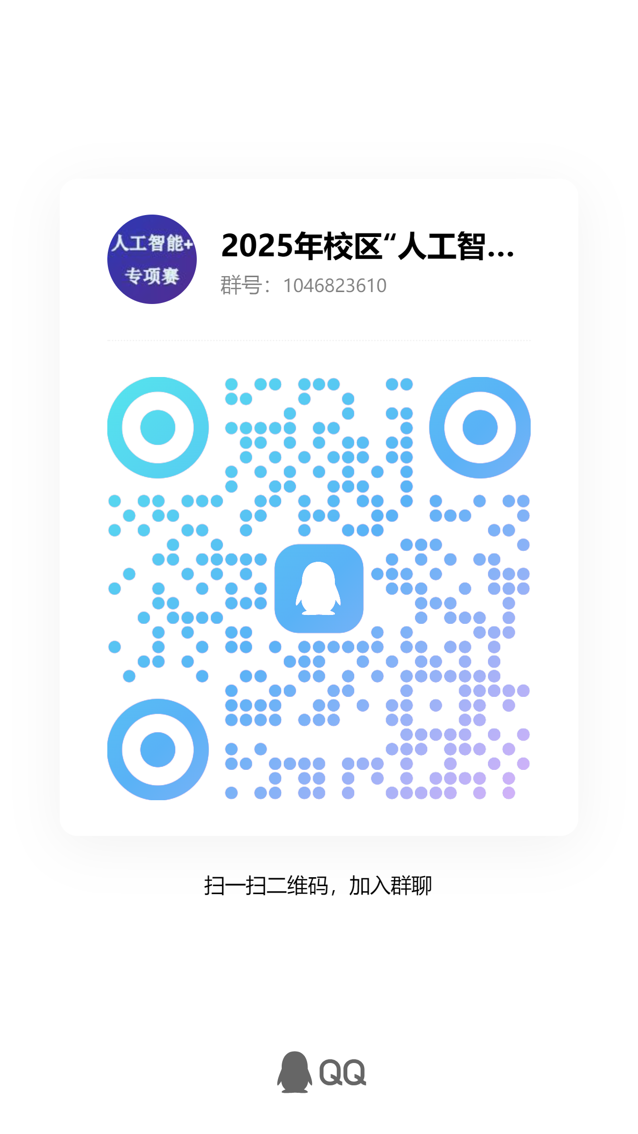 完成报名后,加入校区“人工智能+”专项赛QQ群(1046823610),报名审核工作将在群中发布。